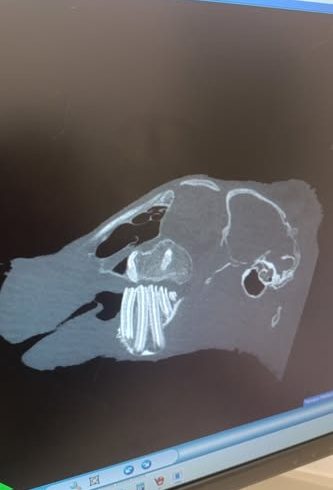 Vor einem Jahr kam sie zusammen mit ihrer Schwester zu uns. Ihre Schwester, die extrem klein war, ist bereits kurz darauf verstorben. Durch Inzucht hat auch Florea verschieden Baustellen. Sie ist kleinwüchsig, hat das Fell eines Babykaninchens und extreme Zahnfehlstellungen. Alle zwei Wochen mussten wir die Schneidezähne korrigieren, immer würde über einen OP zum Entfernen der Schneidezähne nachgedacht, aber sowohl wir als auch der Tierarzt hatten Bedenken wegen der Narkose. Vor 2 Monaten aber kamen wir um die OP nicht mehr herum und ihr wurden die oberen Schneidezähne sowie die oberen rechten Backenzähne entfernt. Sie hat die Narkose gut überstanden, hatte aber nach der Operation mit hartnäckigem Eiter zu kämpfen. Nach 4 Wochen war dann endlich alles gut verheilt. Nun kam vorletzte Woche der Eiter zurück und unser Tierarzt empfahl uns, ein Wach-CT machen zu lassen um zu sehen, was da los ist. Letzte Woche Montag war es dann soweit und die Ergebnisse sind niederschmetternd. Zwei ihrer oberen Backenzähne sind nachgewachsen, sie hat außerdem eine Verdichtung am rechten Jochbein, entweder durch eine starke Entzündung oder durch einen Tumor, dafür muss erst eine Probe entnommen werden. Auch die Nase ist auf Höhe des linken entfernten Schneidezahns verdichtet, auch hier muss nochmal aufgemacht werden. Die Ärztin ist in ihrer Prognose sehr vorsichtig und macht uns keine großen Hoffnungen. Auch unser Tierarzt sieht das so, er geht auch eher von einem Tumor aus, da sich Floreas Haut und Fell verändern. Nichtsdestotrotz wollen wir ihr eine Chance geben, der Termin für die zweite OP steht und danach wissen wir dann mehr. Sie wird nicht alt werden, aber ein bisschen Zeit hätte sie schon noch verdient!